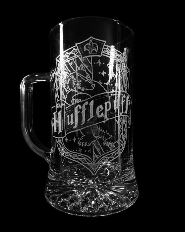 Jarra de cerveza de 1/2L con grabado del escudo de la casa de Hufflepuff, ¡de la prestigiosa escuela de magia Hogwarts!