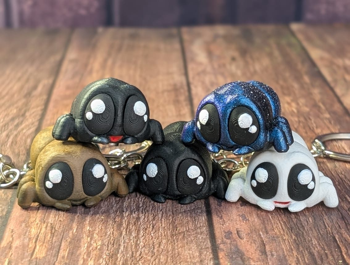 Estas arañas Kawaii han sido impresas en 3D por un talentoso colaborador y luego pintadas a mano con cariño y dedicación por mí, lo que convierte a cada pieza en una pequeña obra única y especial.