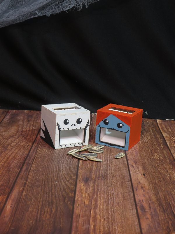 Pelapipas de madera con acabado de los protagonistas de Pesadilla antes de Navidad de Tim burton.