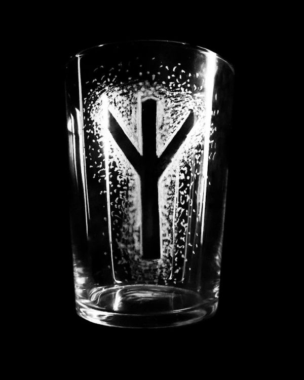 Vaso de sidra con el grabado de una Mandrágora apunto de ser cosechada
