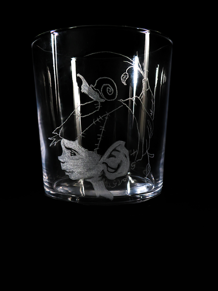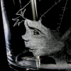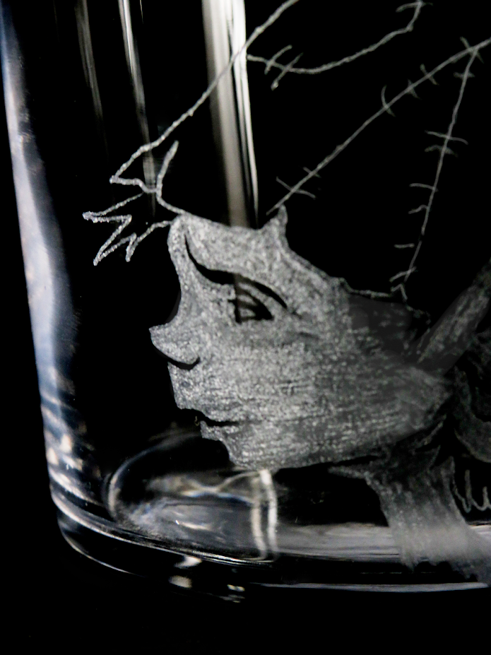 Vaso de 36cl con la cara de duende del bosque grabado.